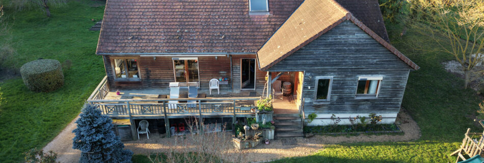 Maison avec bardage en bois, sur terrain arboré. Eure-et-Loir